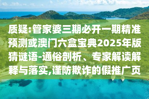 管家婆三期必開一期精準(zhǔn)預(yù)測與澳門六盒寶典2025年版猜謎語”的通俗剖析、專家解讀及如何落實(shí)謹(jǐn)防欺詐的假推廣頁