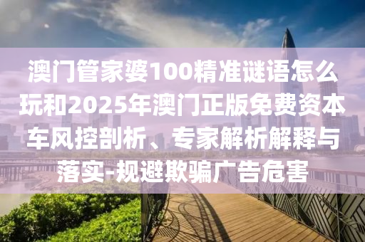 澳門管家婆100精準(zhǔn)謎語(yǔ)怎么玩和2025年澳門正版免費(fèi)資本車風(fēng)控剖析、專家解析解釋與落實(shí)-規(guī)避欺騙廣告危害