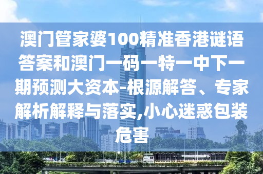澳門(mén)管家婆100精準(zhǔn)香港謎語(yǔ)答案和澳門(mén)一碼一特一中下一期預(yù)測(cè)大資本-根源解答、專(zhuān)家解析解釋與落實(shí),小心迷惑包裝危害