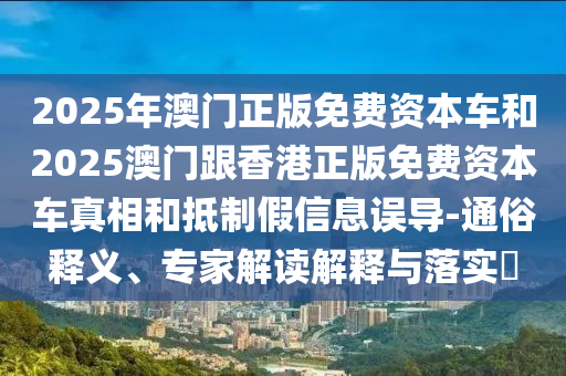 2025年澳門正版免費(fèi)資本車和2025澳門跟香港正版免費(fèi)資本車真相和抵制假信息誤導(dǎo)-通俗釋義、專家解讀解釋與落實(shí)?