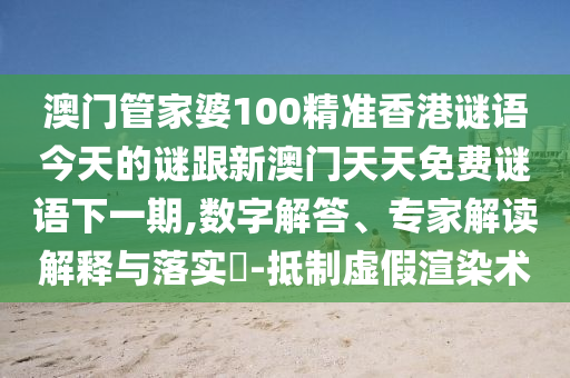 澳門管家婆100精準香港謎語今天的謎跟新澳門天天免費謎語下一期,數(shù)字解答、專家解讀解釋與落實?-抵制虛假渲染術