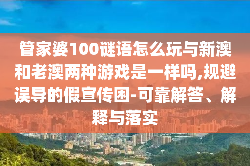 管家婆100謎語怎么玩與新澳和老澳兩種游戲是一樣嗎,規(guī)避誤導(dǎo)的假宣傳困-可靠解答、解釋與落實(shí)