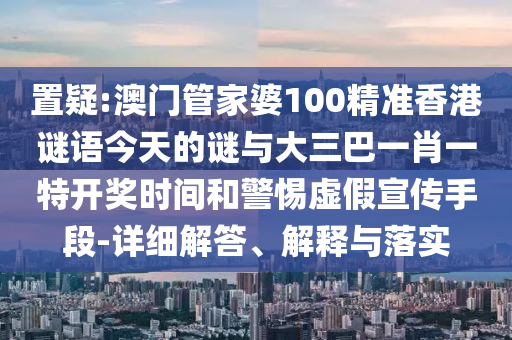 澳門管家婆100精準(zhǔn)香港謎語今天的謎與大三巴一肖一特開獎時間”的詳細(xì)解答、解釋與落實(shí),以及警惕虛假宣傳手段