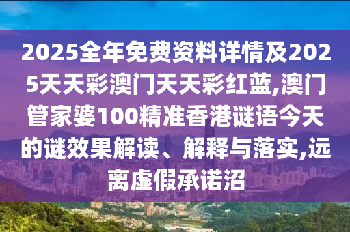2025全年免費資料詳情及2025天天彩澳門天天彩紅藍,澳門管家婆100精準香港謎語今天的謎效果解讀、解釋與落實,遠離虛假承諾沼
